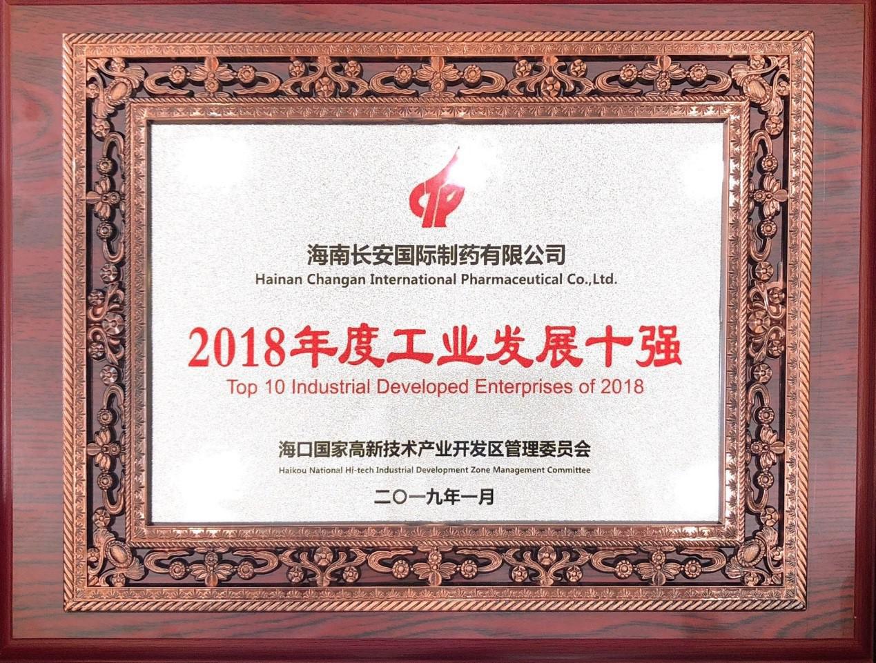大會對科技進(jìn)度與提質(zhì)增效這兩方面表現(xiàn)突出的企業(yè)進(jìn)行表彰,海南長安國際制藥有限公司榮獲“2018年工業(yè)發(fā)展十強(qiáng)”“2018年發(fā)展?jié)摿χ?rdquo;、、“2018年醫(yī)藥單品種銷售收入六強(qiáng)”稱號。