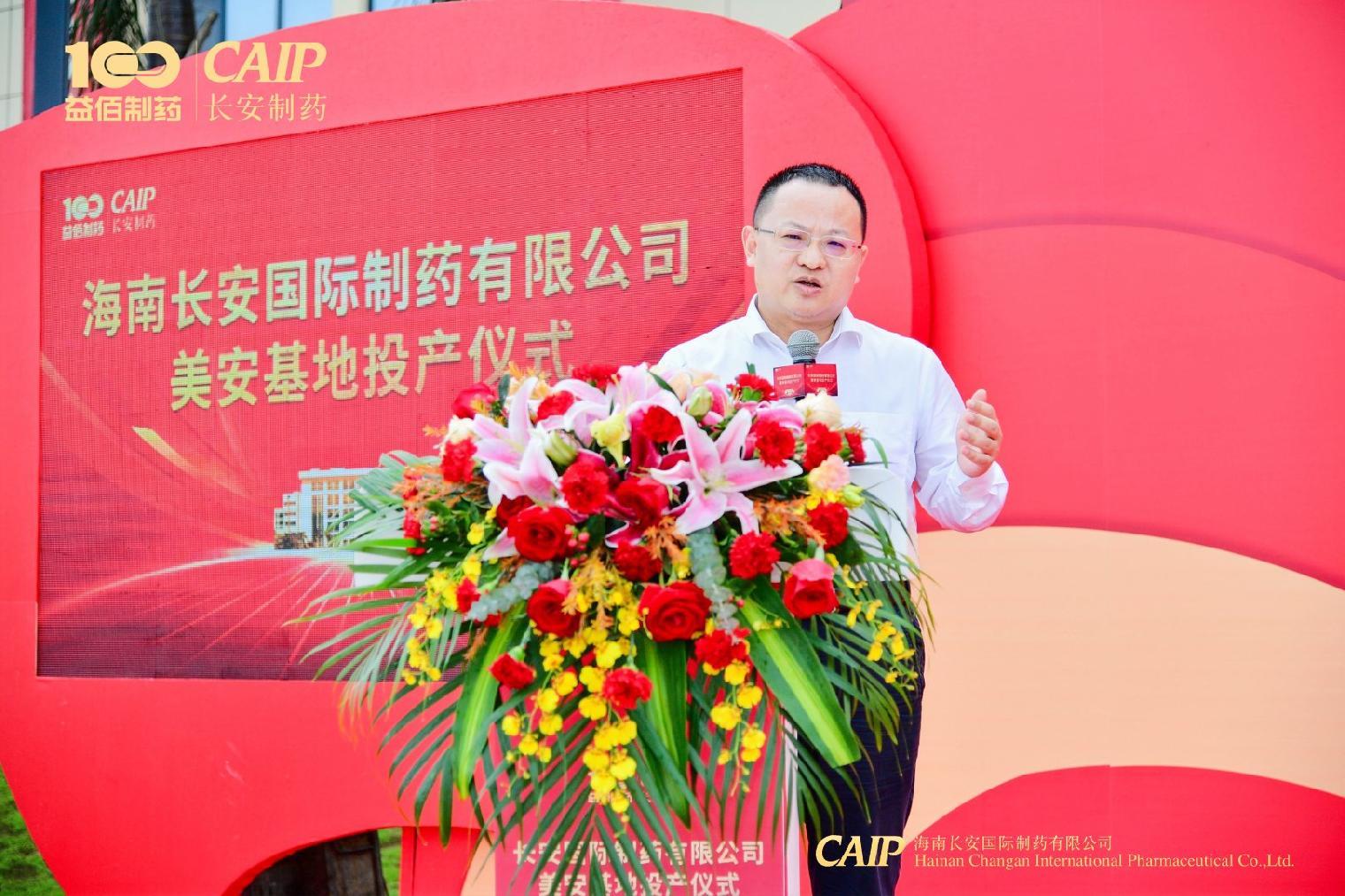 海口市副市長、高新區工委書記劉立武代表海口市委、市政府對長安國際制藥美安基地順利投產表示祝賀。他表示:回顧了美安基地洽談、簽約、開工到建設,時間正好是三年,三年時光長安制藥的建設者們不辭辛勞日夜兼程,在保證質量的情況下,以最快的速度完成建設,贏得了市委、市政府及高新區的一致認可,借此機會希望長安制藥深耕海口、深耕美安,推出更多的品種、更多的研發,海口市委、市政府將一如既往支持長安制藥的發展建設。