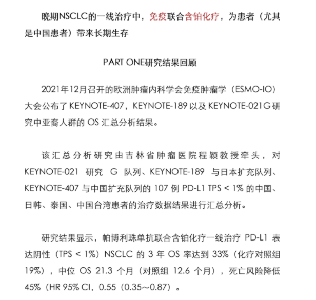 PD-L1 TPS<1%的晚期NSCLC一線免疫治療策略中,含鉑化療不可或缺
